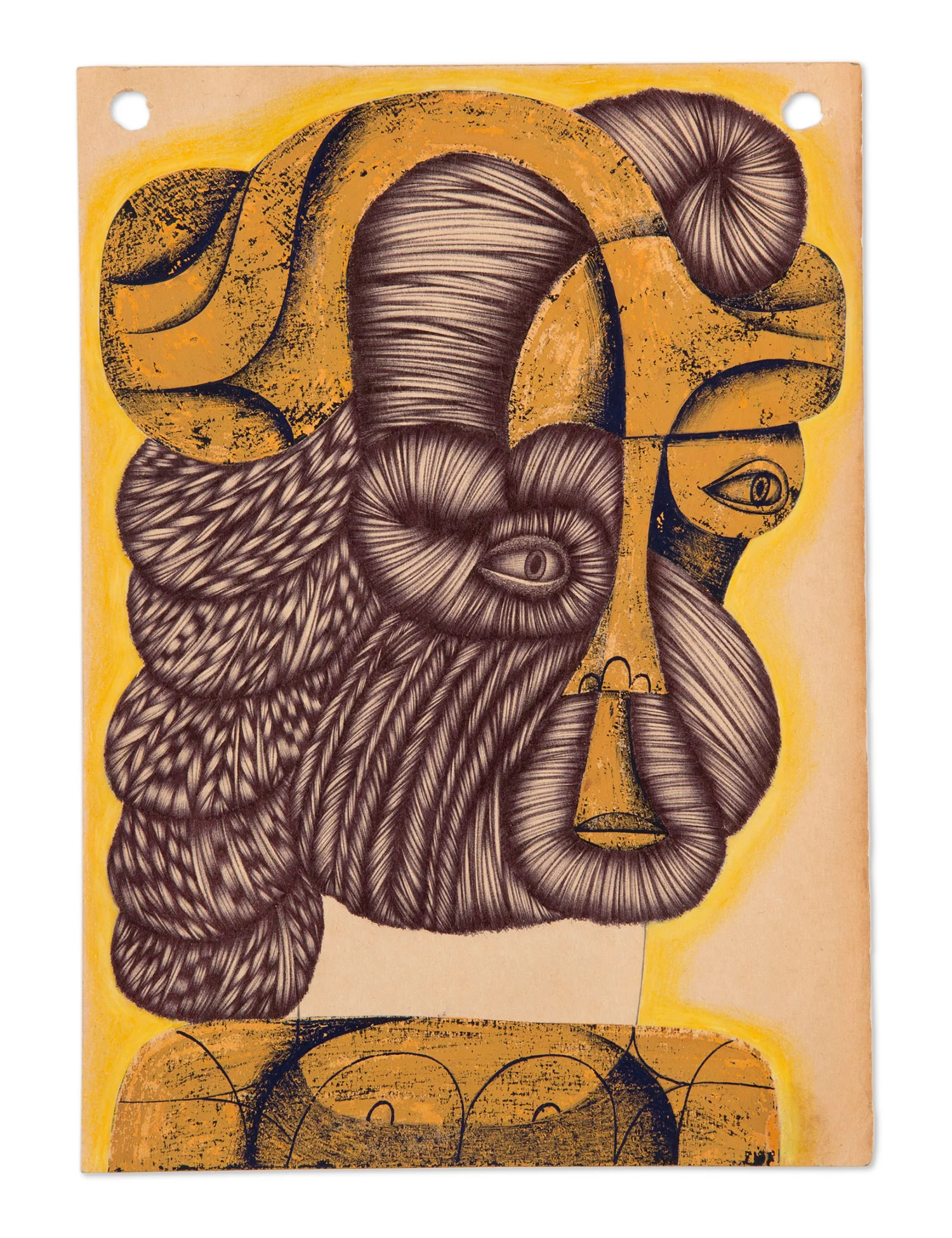 7.5” x 10.5” / ink, pencil, colored pencil, gouache on found paper